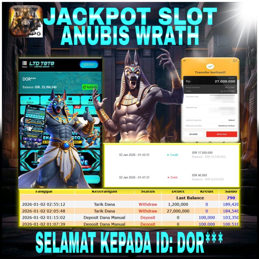 LTDTOTO JACKPOT ANUBIS WRATH RP 27.000.000 JUM’AT 02 JANUARI 2025