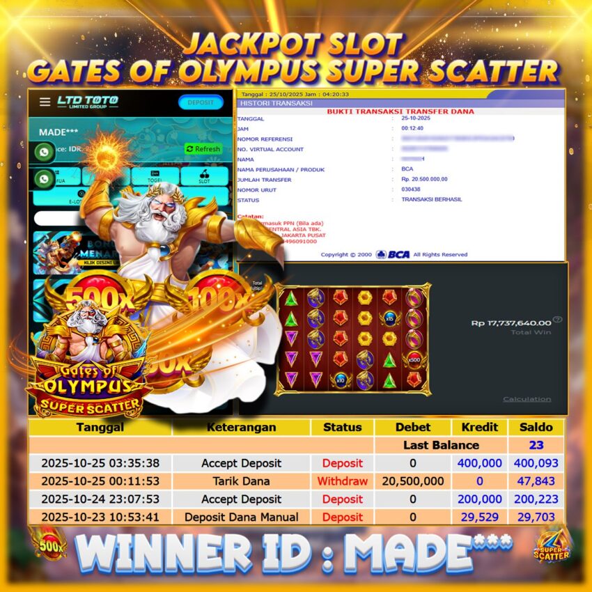 LTDTOTO JACKPOT GATES OF OLYMPUS SUPER SCATTER RP 20.500.000 SABTU 25 OKTOBER 2025