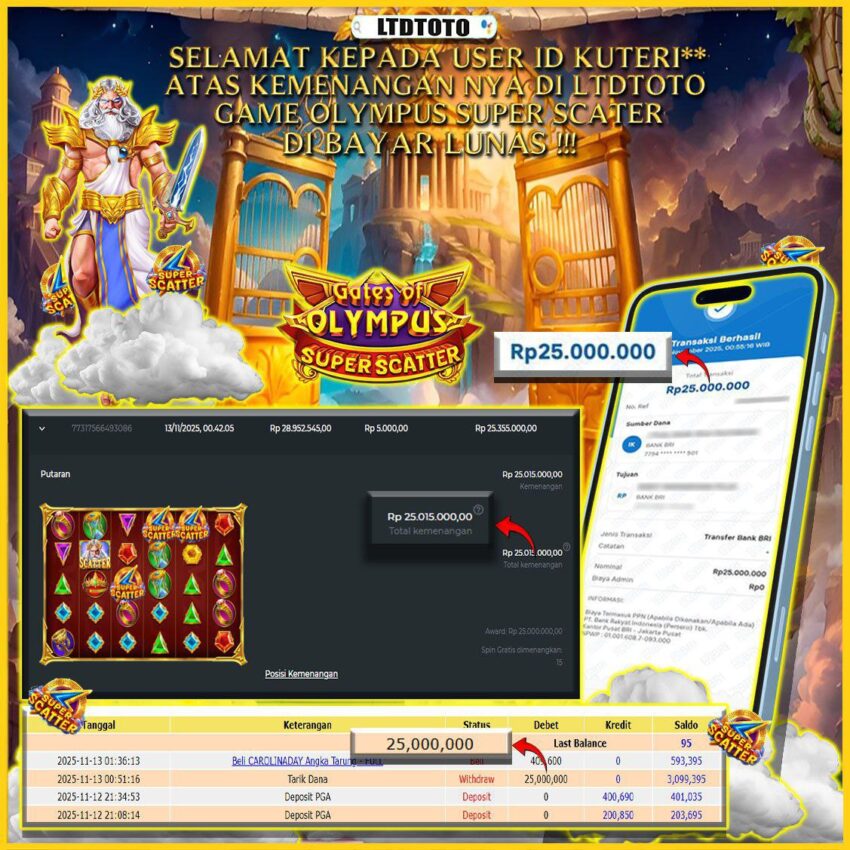 LTDTOTO JACKPOT GATES OF OLYMPUS SUPER SCATTER RP 25.000.000 KAMIS 13 NOVEMBER 2025