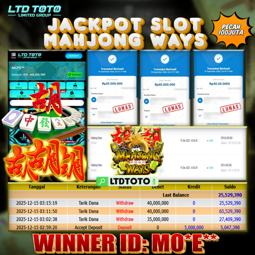 LTDTOTO JACKPOT MAHJONG WAYS RP 115.000.000 SENIN 15 DESEMBER 2025