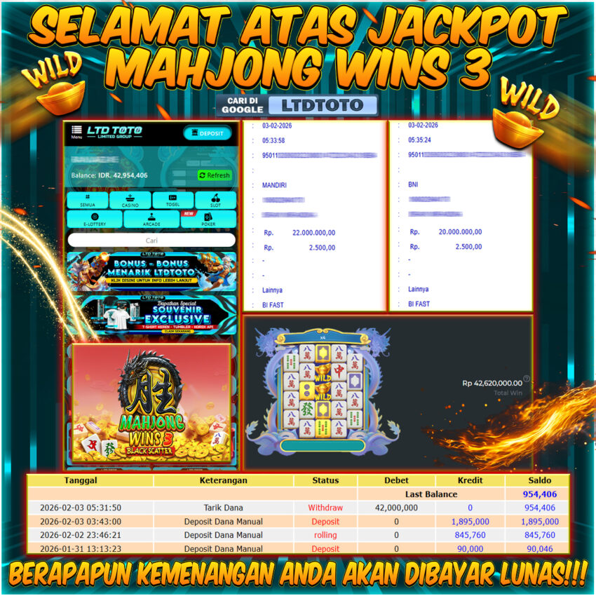 LTDTOTO JACKPOT MAHJONG WINS 3 RP 42.000.000 SELASA 3 FEBRUARY 2026