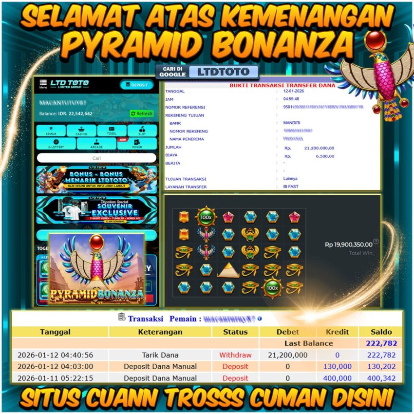 LTDTOTO JACKPOT PYRAMID BONANZA RP 21.200.000 DI BAYAR LUNAS!