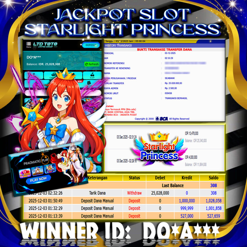 LTDTOTO JACKPOT STARLIGHT PRINCESS RP 25.028.000 RABU 03 DESEMBER 2025