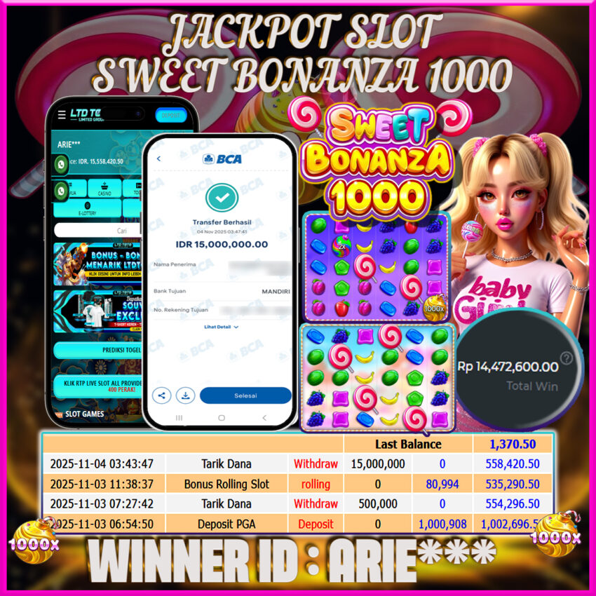 LTDTOTO JACKPOT SWEET BONANZA 1000 RP 15.000.000 SELASA 04 NOVEMBER 2025