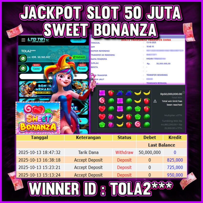 LTDTOTO JACKPOT SWEET BONANZA RP 50.000.000 SENIN 13 OKTOBER 2025