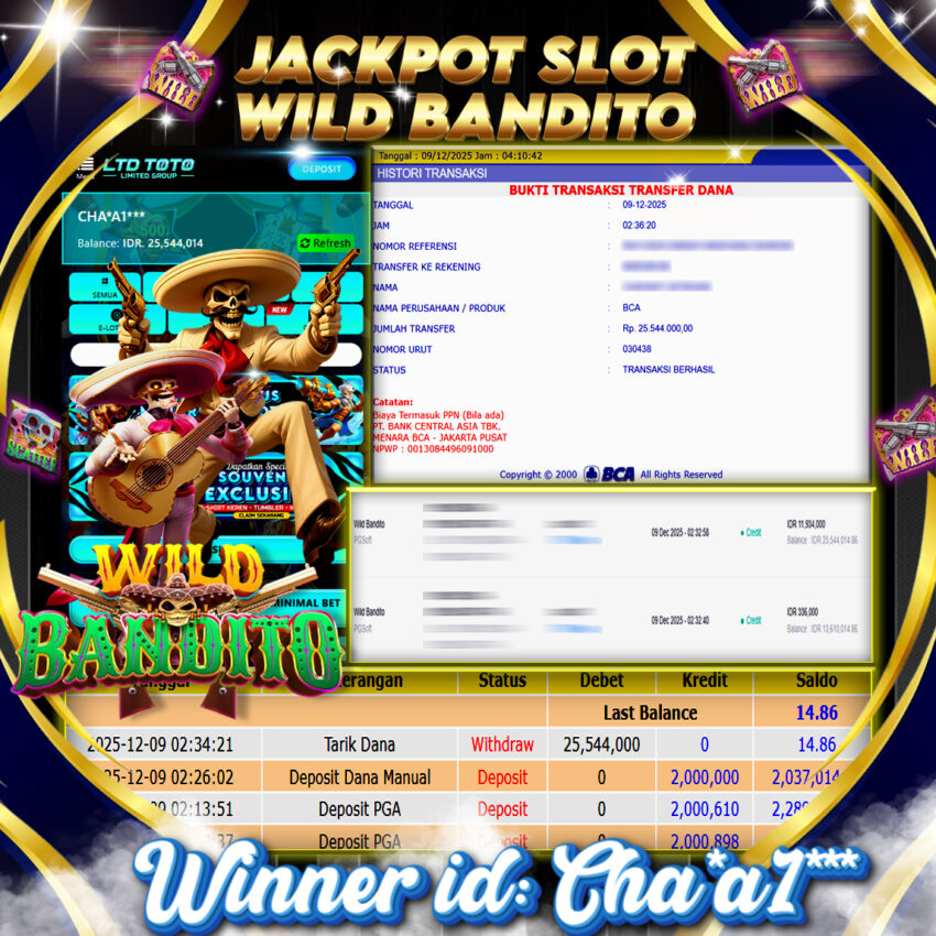 LTDTOTO JACKPOT WILD BANDITO RP 25.544.000 SELASA 09 DESEMBER 2025