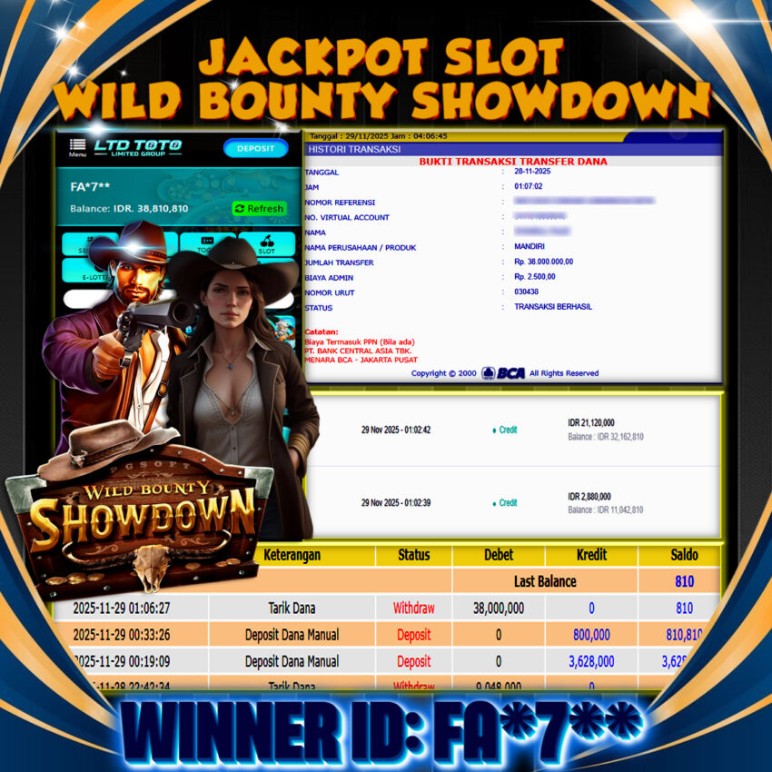 LTDTOTO JACKPOT WILD BOUNTY SHOWDOWN RP 38.000.000 SABTU 29 NOVEMBER 2025