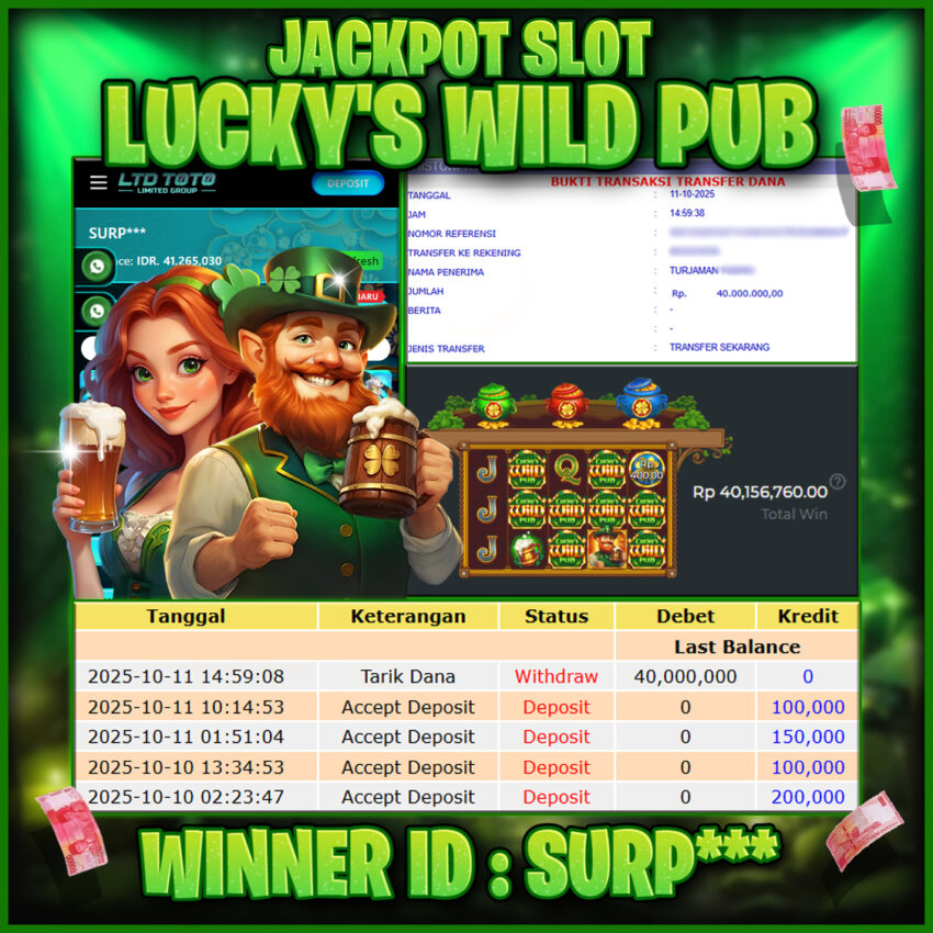 LTDTOTO JACKPOT LUCKY’S WILD PUB RP 40.000.000 SABTU 11 OKTOBER 2025