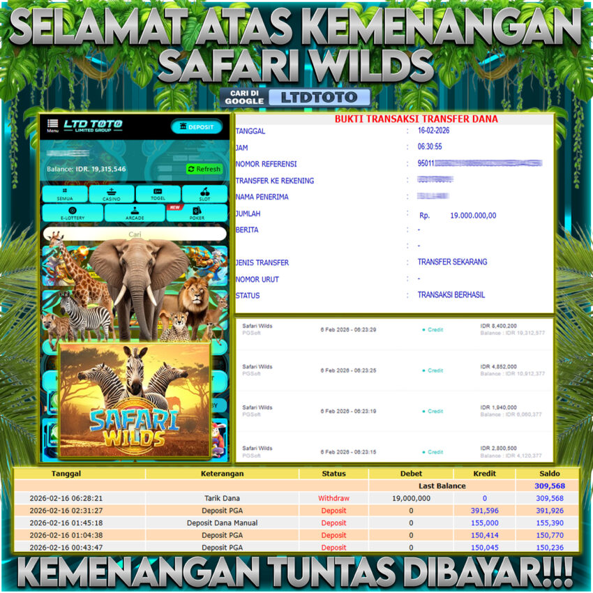 LTDTOTO JACKPOT SAFARI WILDS RP 19.000.000 SENIN 16 FEBRUARY 2026